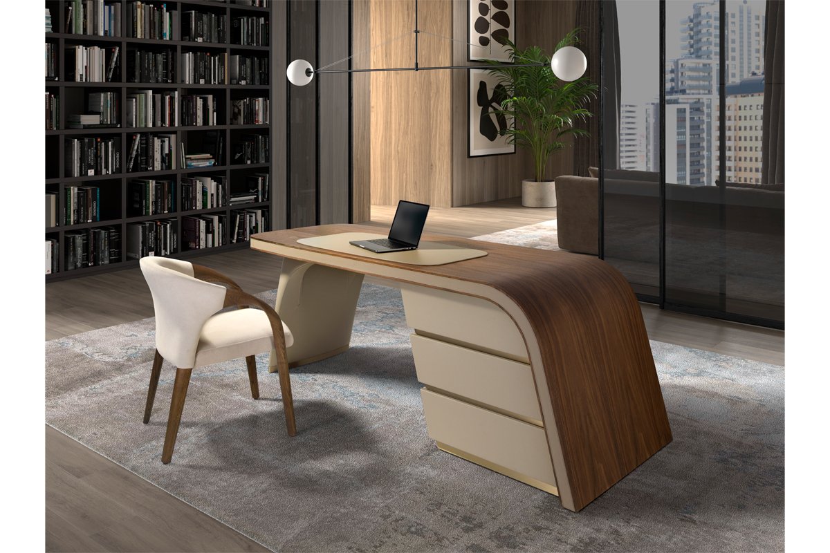 Bureau 3 tiroirs - Imitation noyer et beige