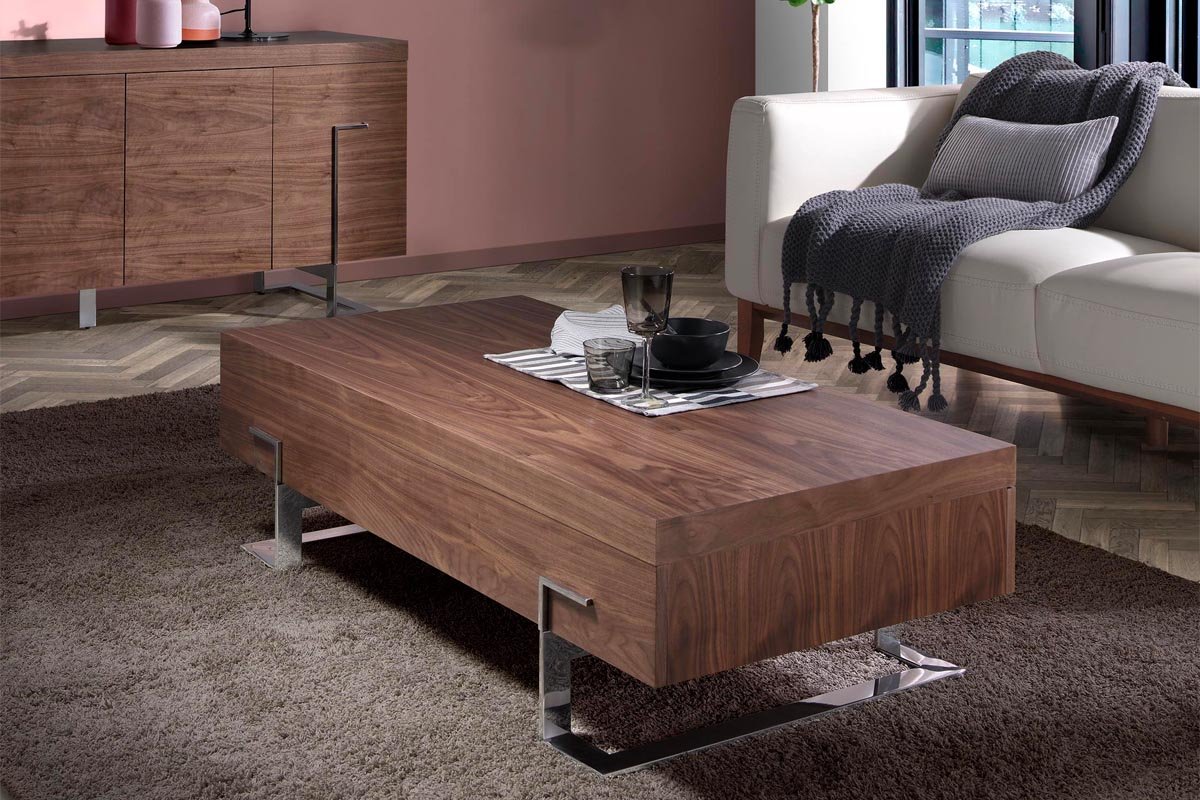 Table basse 1 tiroir - Imitation noyer et argenté