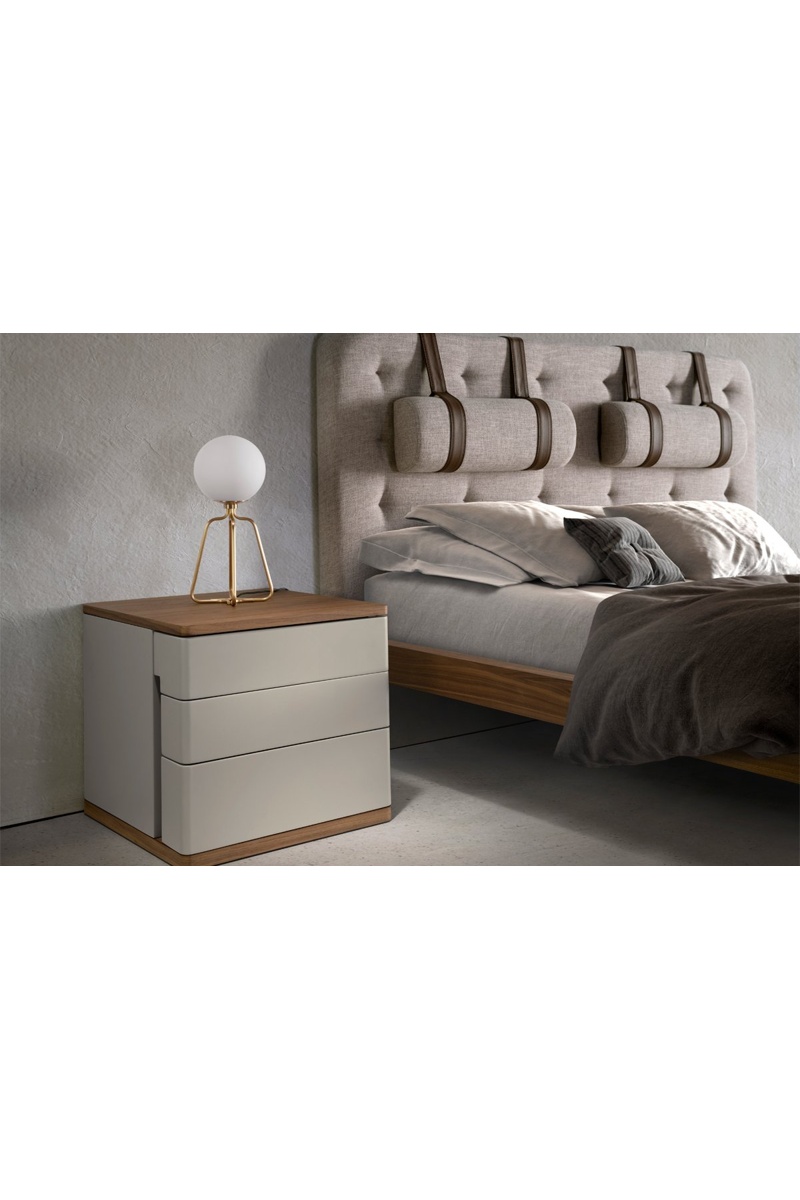 Table de chevet 3 tiroirs - Blanc et imitation noyer