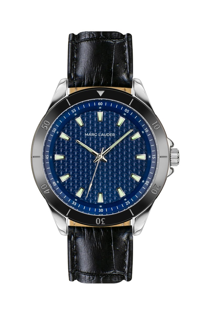 Montre à quartz en cuir Valletta - Noir et bleu