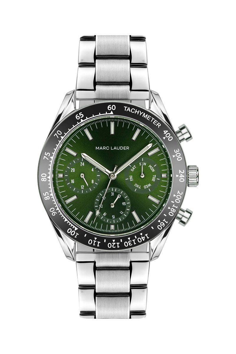 Montre à quartz en acier Lisbon - Tachymètre - Argenté et noir
