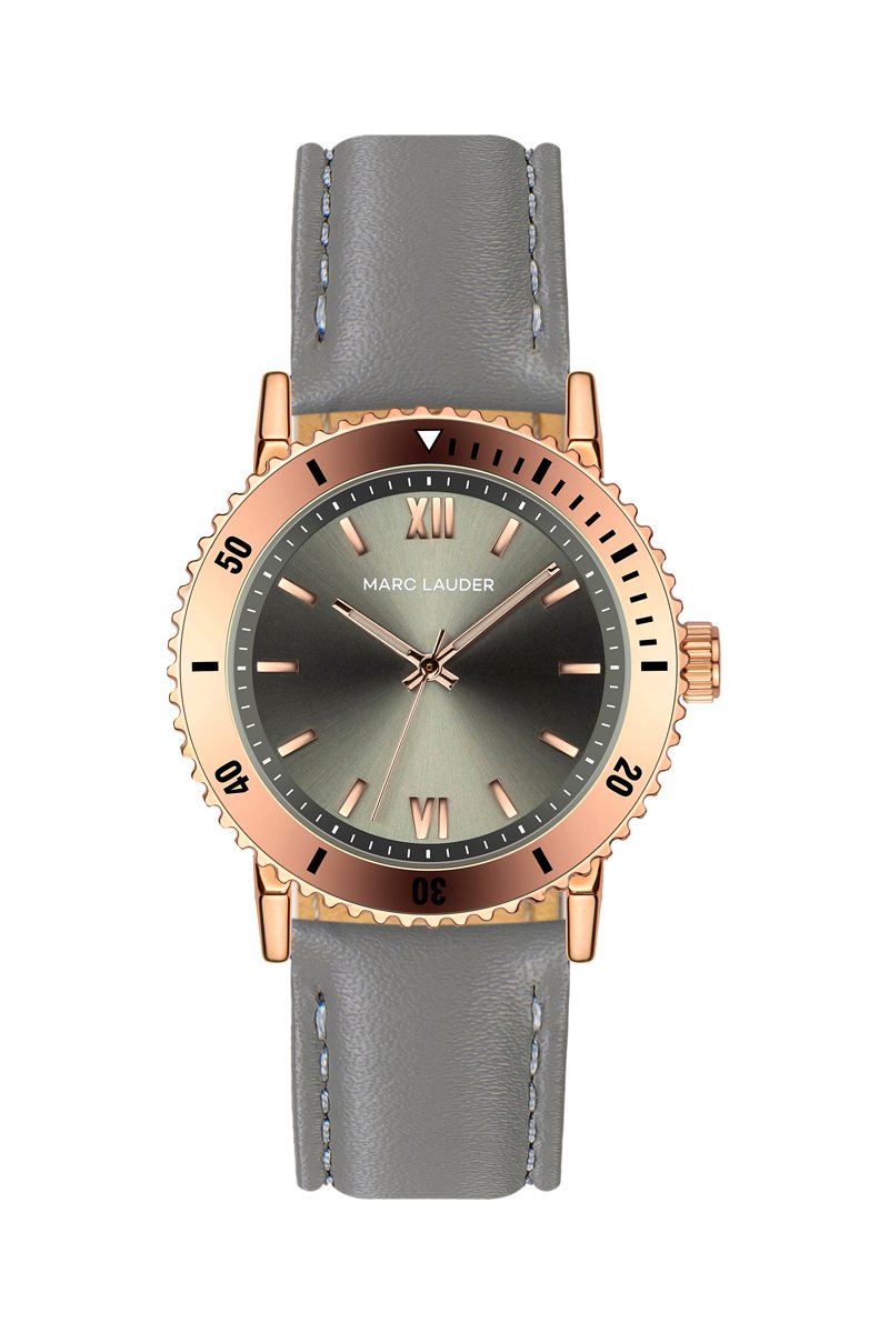 Montre à quartz en cuir Rome - Gris et doré rose