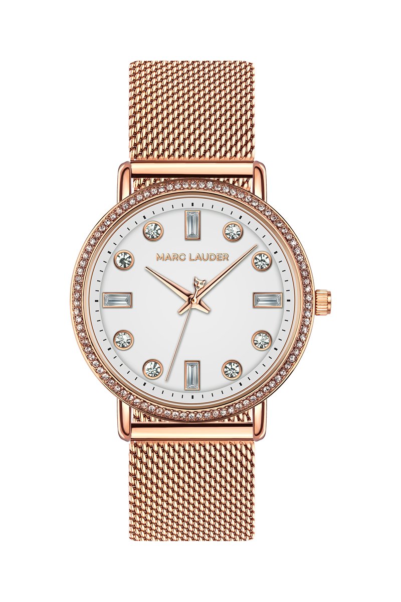 Montre à quartz en acier Monaco - Doré rose et blanc
