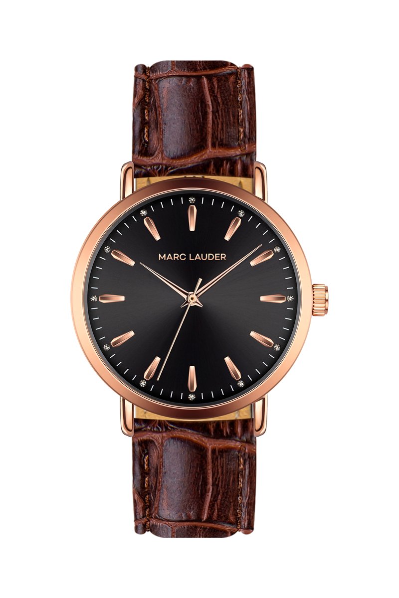 Montre à quartz en cuir Bologna - Marron et doré rose