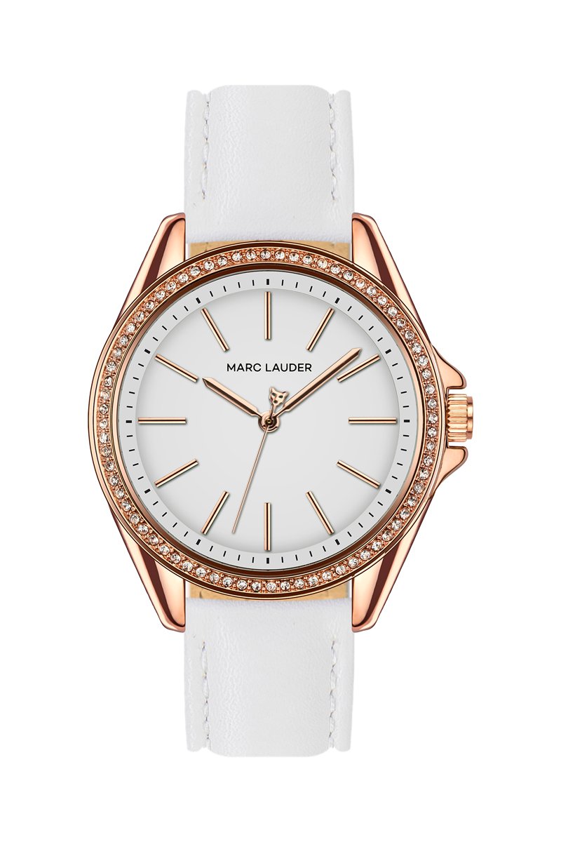 Montre à quartz en cuir Malaga - Blanc et doré rose