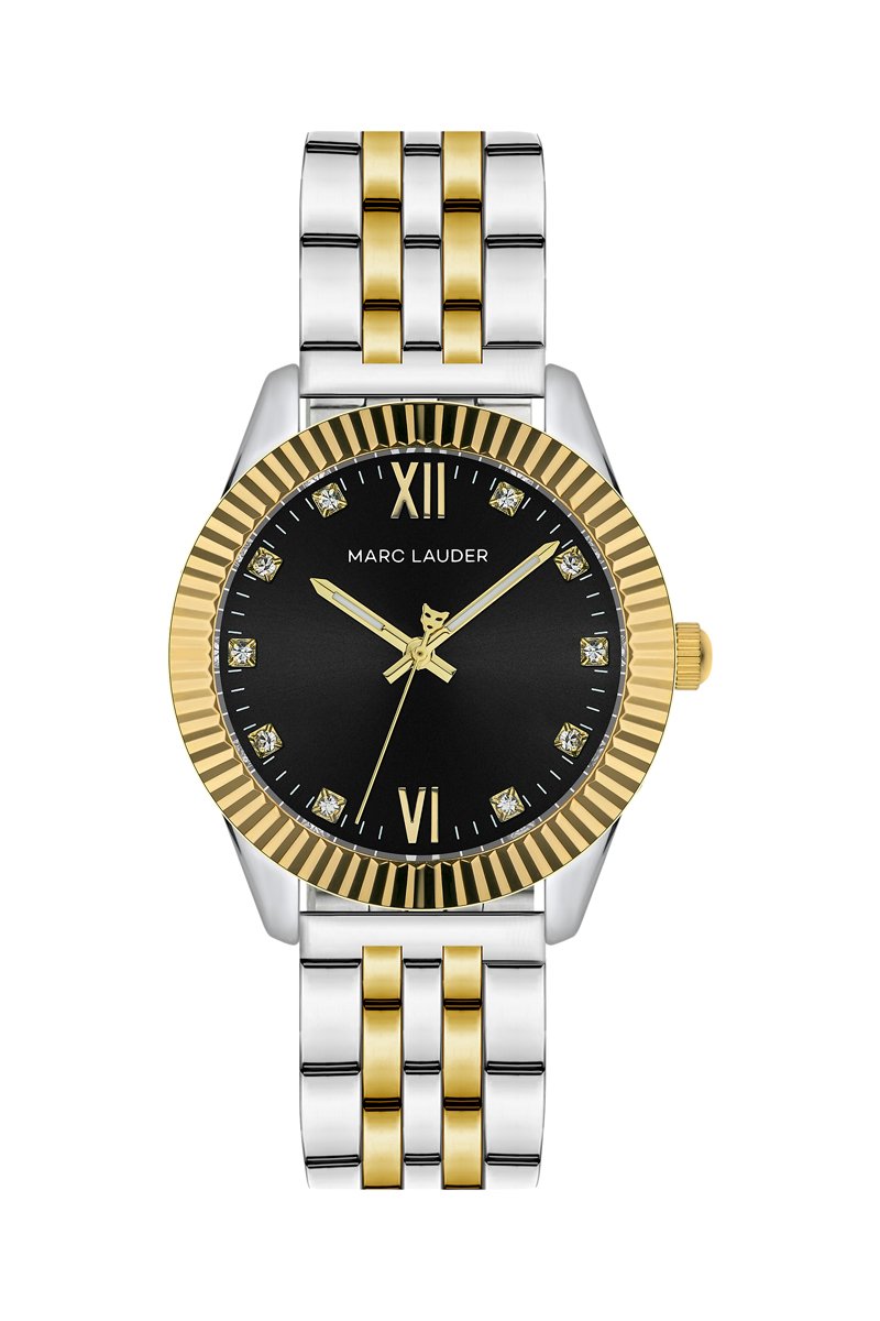 Montre à quartz en acier et zircons Edinburgh - Argenté et noir