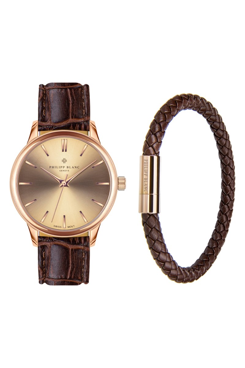 Coffret montre à quartz en cuir et bracelet en cuir