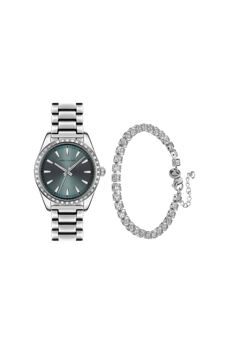 Coffret montre à quartz en acier et zircons et bracelet Ankara