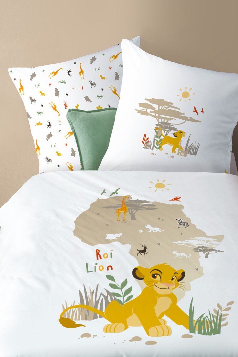 Parure de couette en coton Simba Le roi Lion Disney - Blanc et jaune