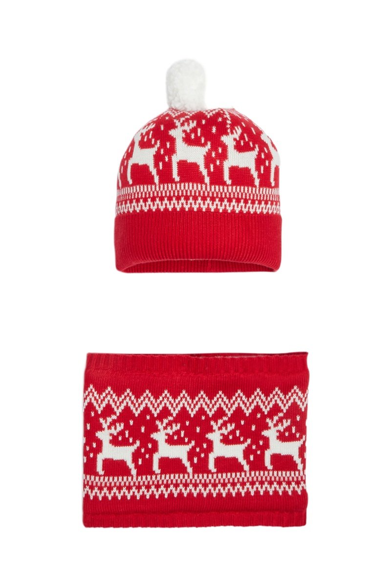 Bonnet à pompon et snood - Rouge - Okaïdi