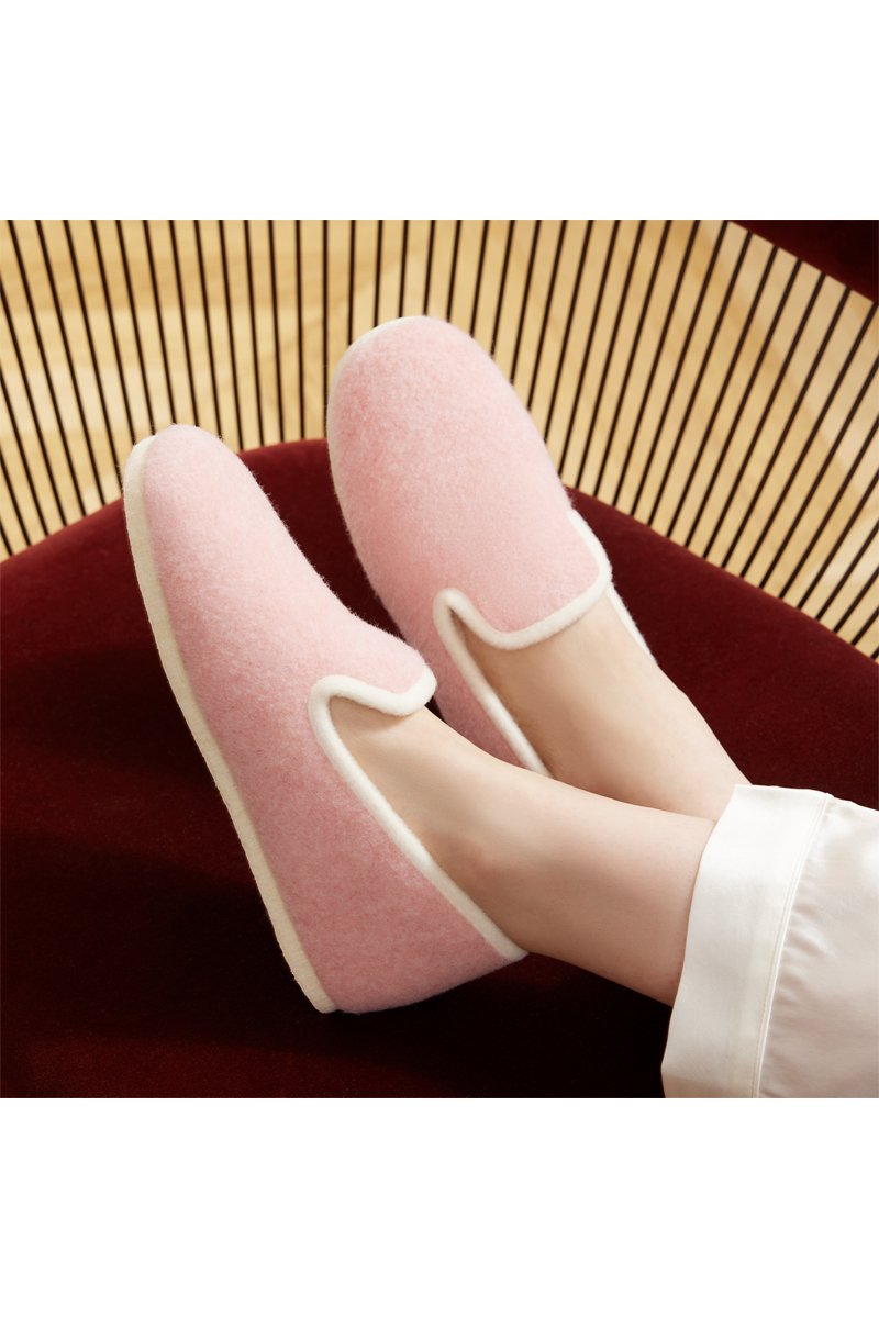 Charentaises en laine La Barbe à Papa - Rose et blanc