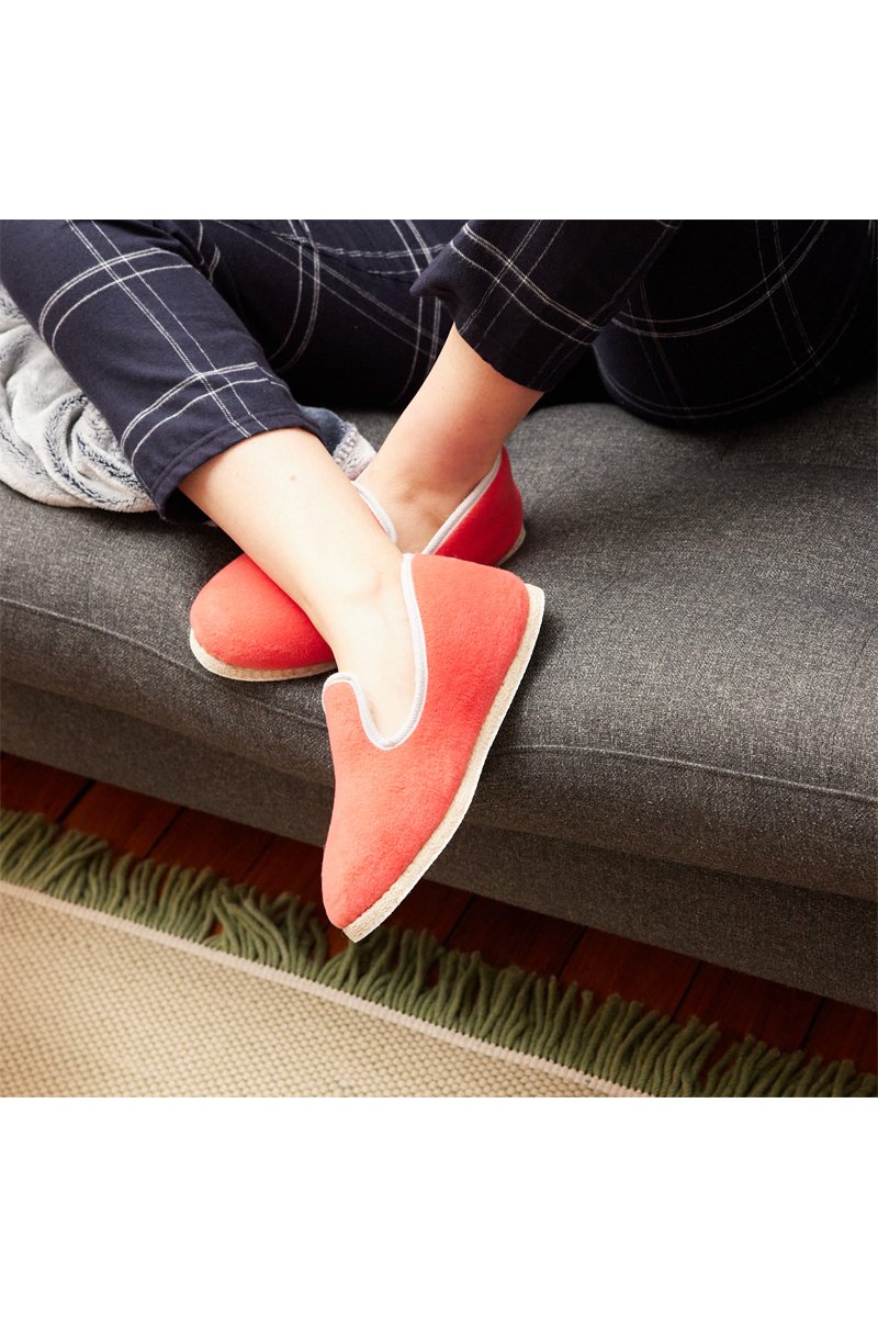 Charentaises en laine Sagan - Saumon et blanc