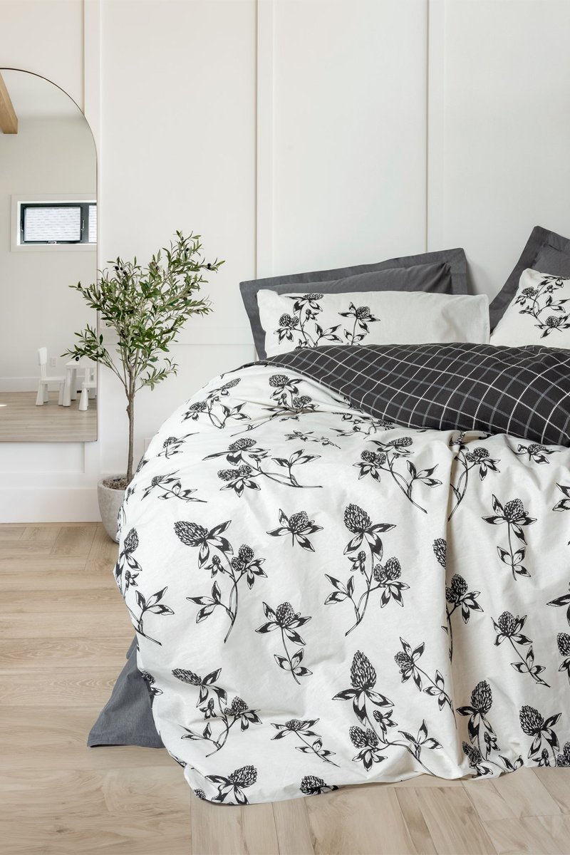Parure de couette en coton 57 fils/cm² Ohia - Anthracite et blanc