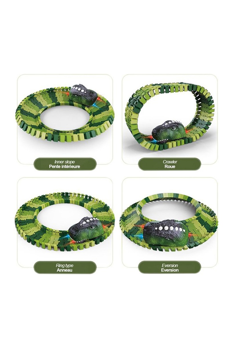 Véritable tremplin à la créativité, ce circuit au thème Jurassic offre de nombreuses possibilités de construction.