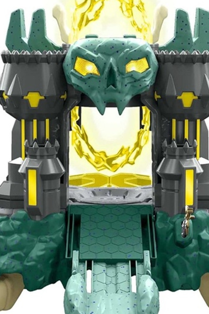 Les boutons sur le dessus du crâne déclenchent d’autres sons de combat et effets spéciaux impressionnants ! Une scène de combat sur le dessus de la forteresse sera l’occasion idéale pour jeter les figurines dans les cellules en écartant les pointes.