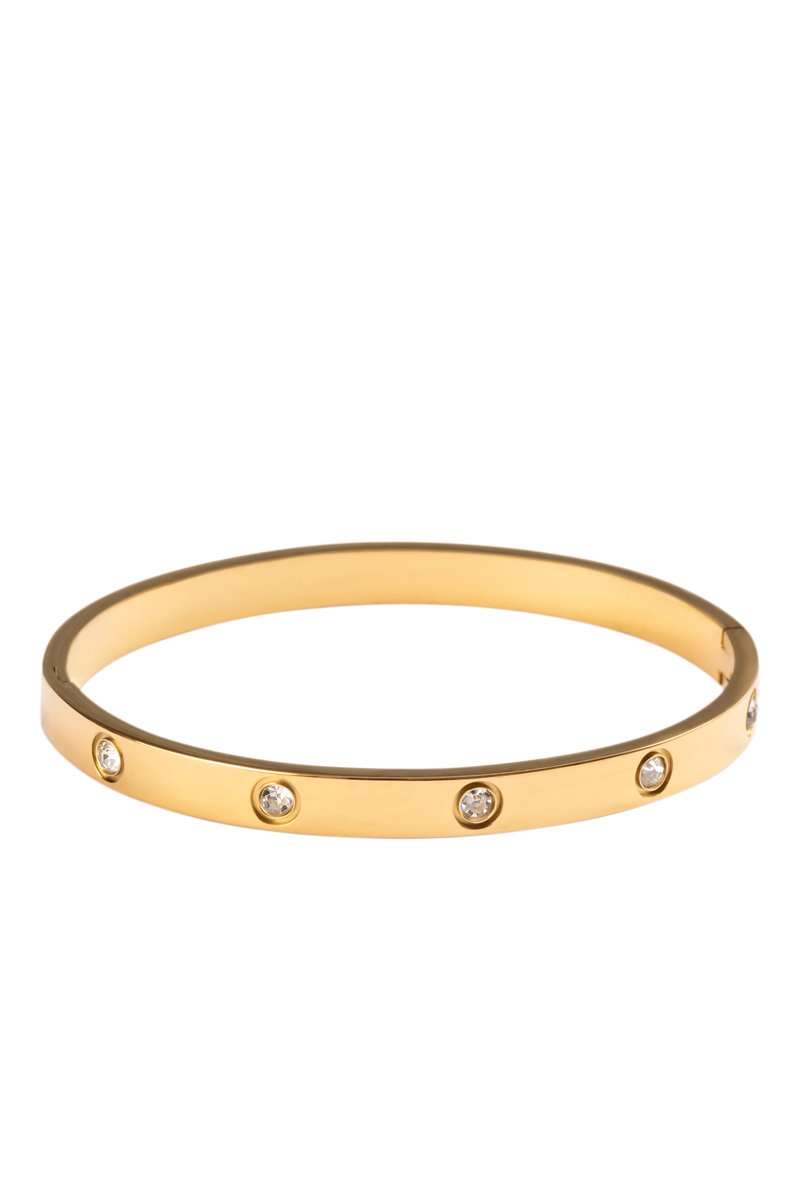Matière : acier inoxydable plaqué or jaune 18 carats et zirconiums