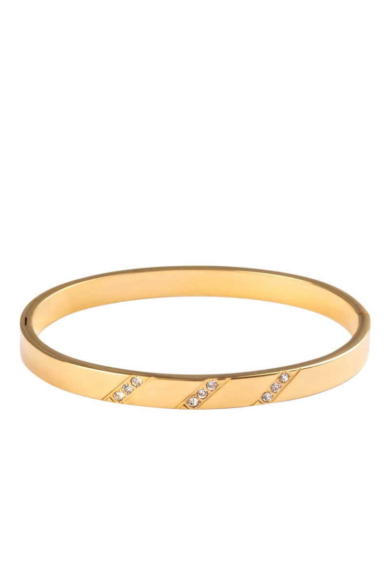 Matière : acier inoxydable plaqué or jaune 18 carats et zirconiums
