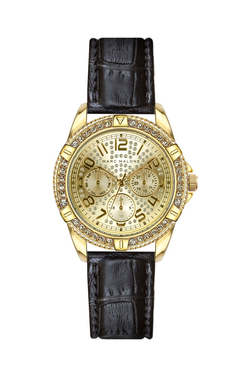 Montre à quartz en cuir et cristal véritable - Marc Malone