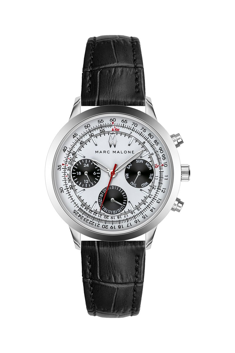 Montre à quartz en cuir - Noir et argenté - Marc Malone