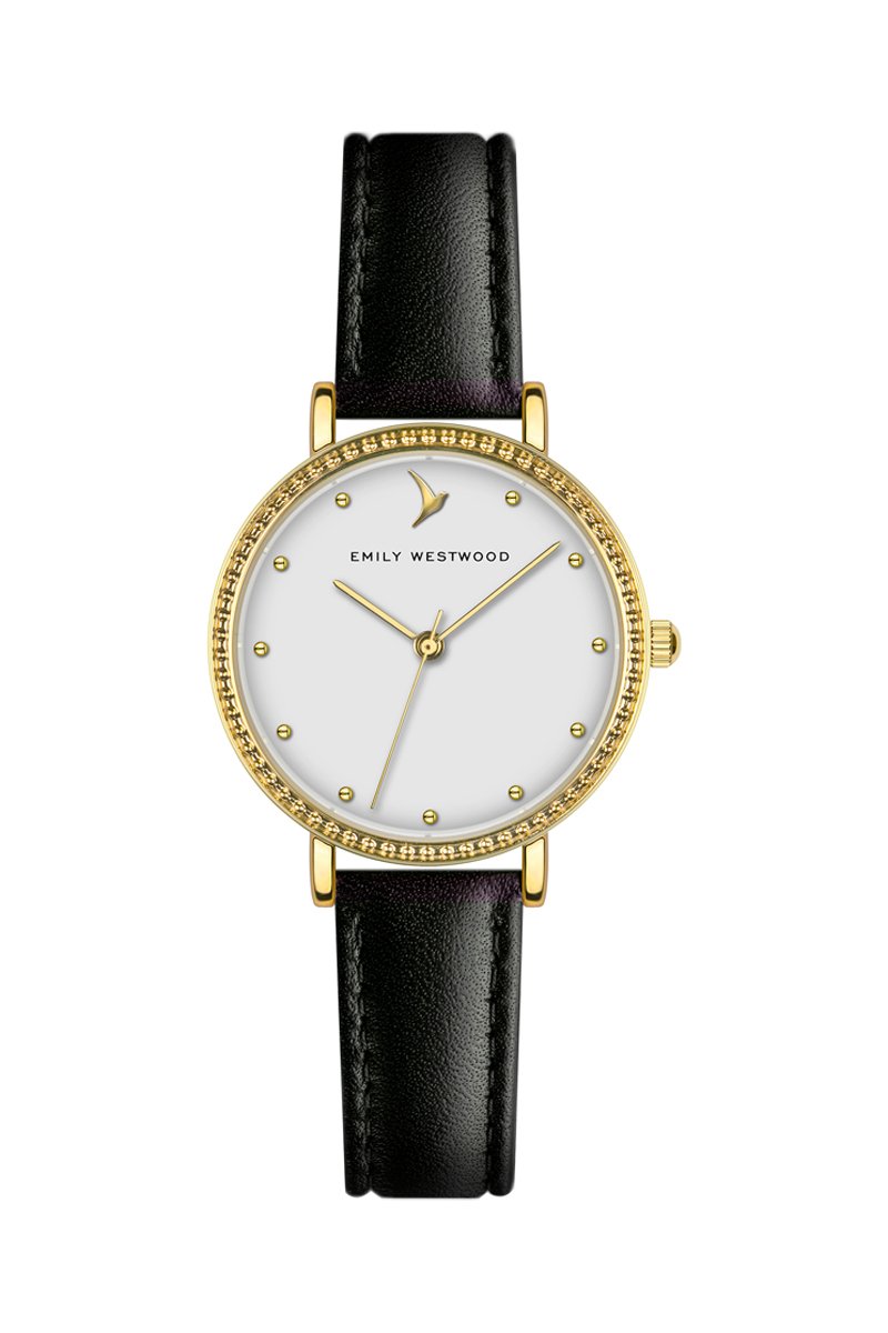 Montre à quartz en cuir - Blanc et doré - Emily Westwood