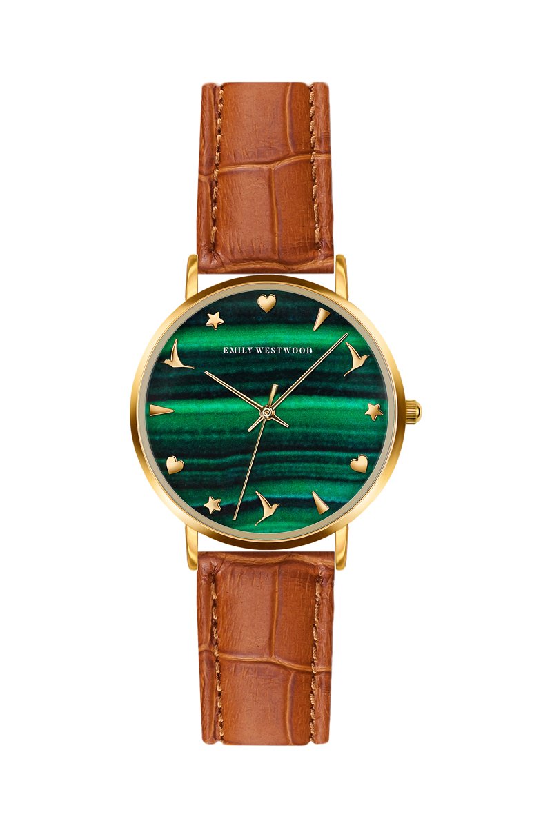 Montre à quartz en cuir - Marron et doré - Emily Westwood