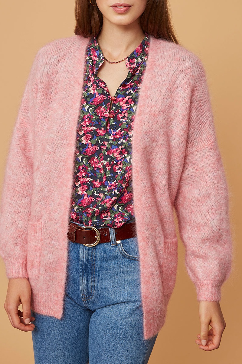Gilet long oversize à manches longues en mohair et laine mélangés.
