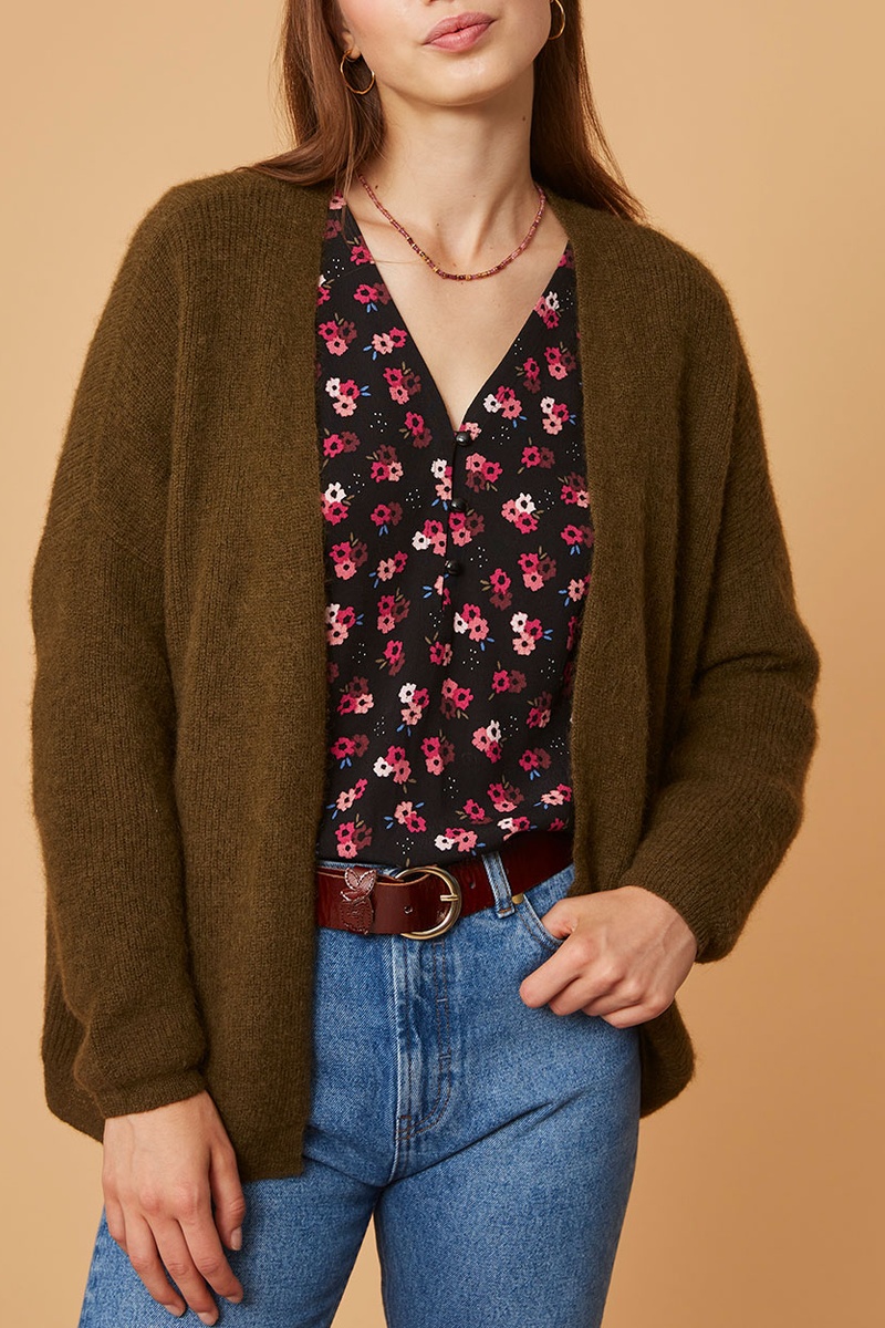 Gilet à manches longues en mohair mélangé et alpaga mélangés.