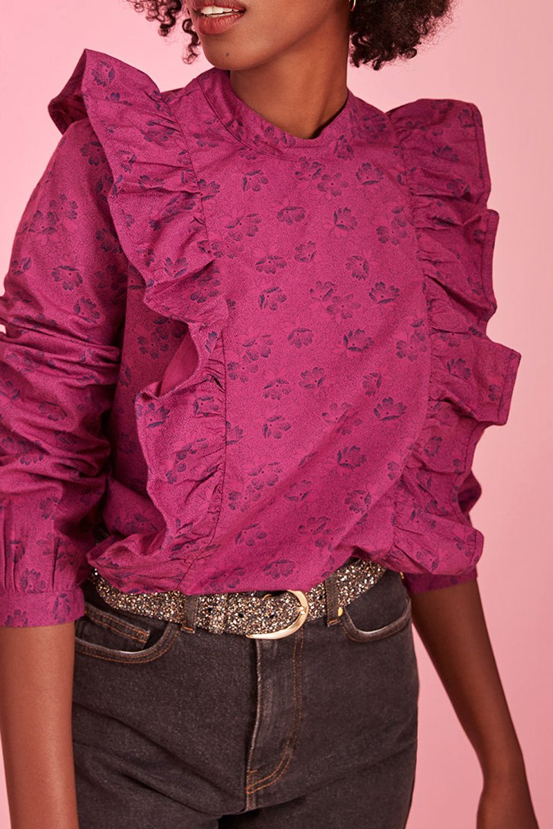 Blouse volantée Voliane - Cassis
