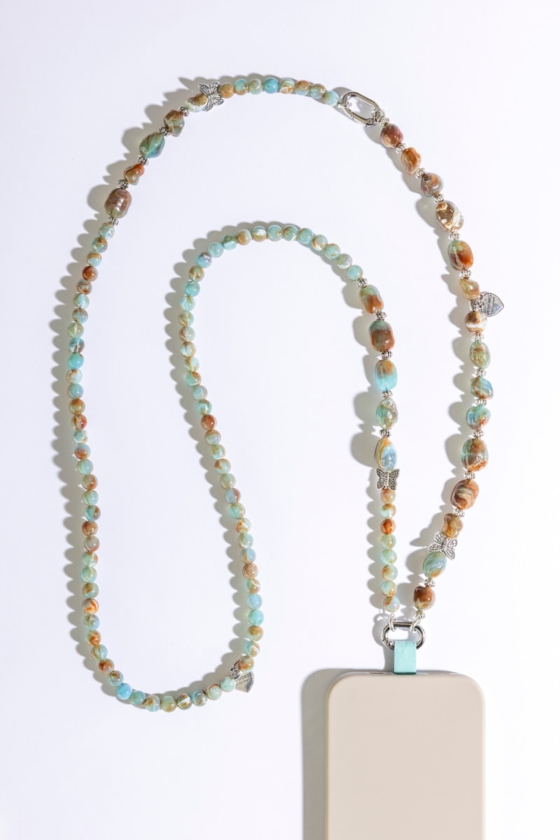 Cordon chaînette téléphone 2-en-1 en perles décoratives.