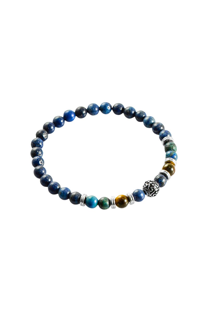 Bracelet élastique serti de lapis-lazuli et d'œils-de-tigre.