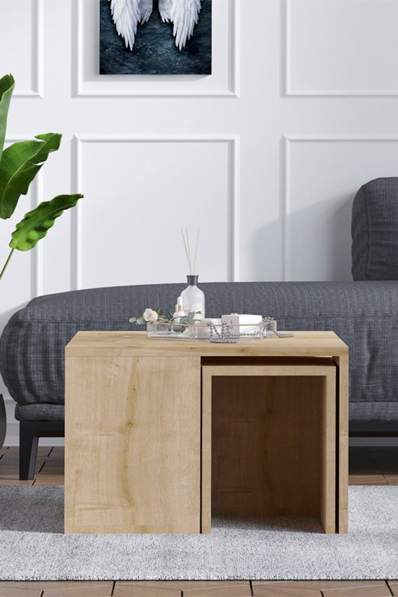Table basse et 4 tables d'appoint Ortanca - 60 x 60 x 37 cm/30 x 32 x 25 cm
