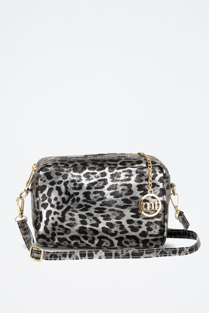 Sac bandoulière en cuir Caltanissetta - Noir et gris