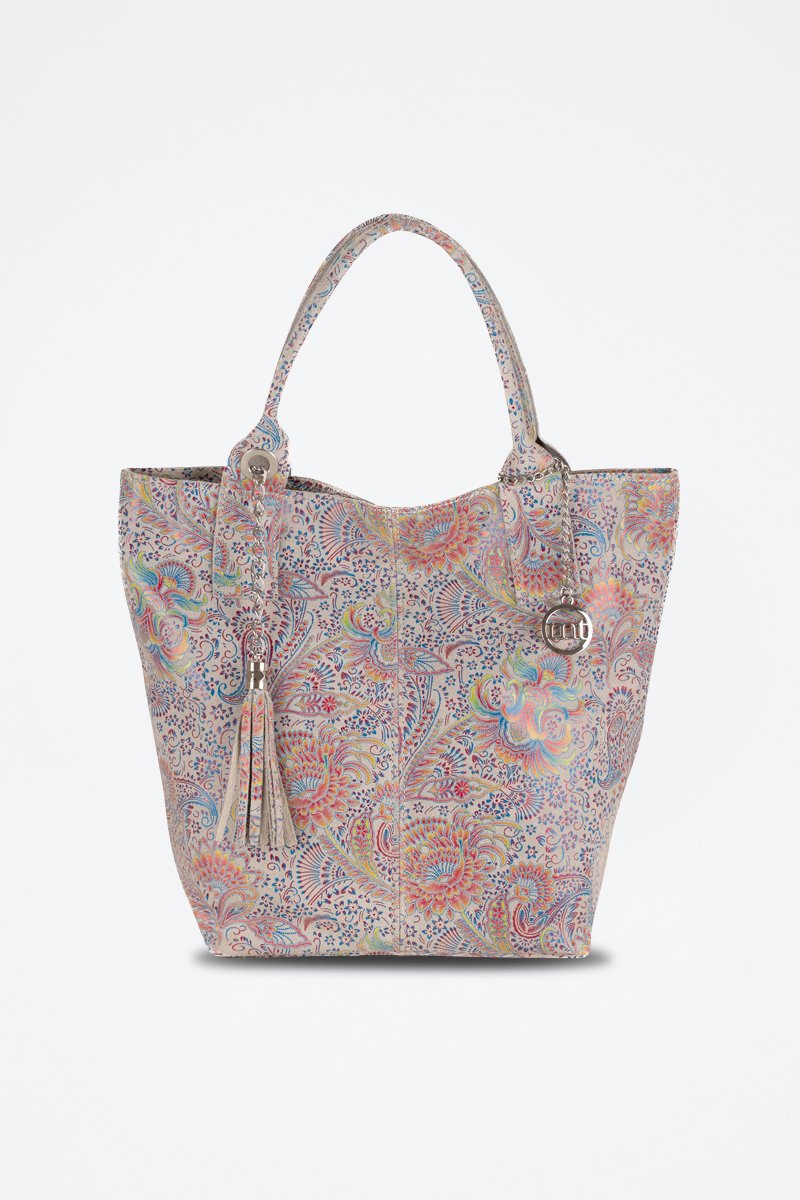 Cabas en cuir Liberazione - Beige, bleu, jaune et rose