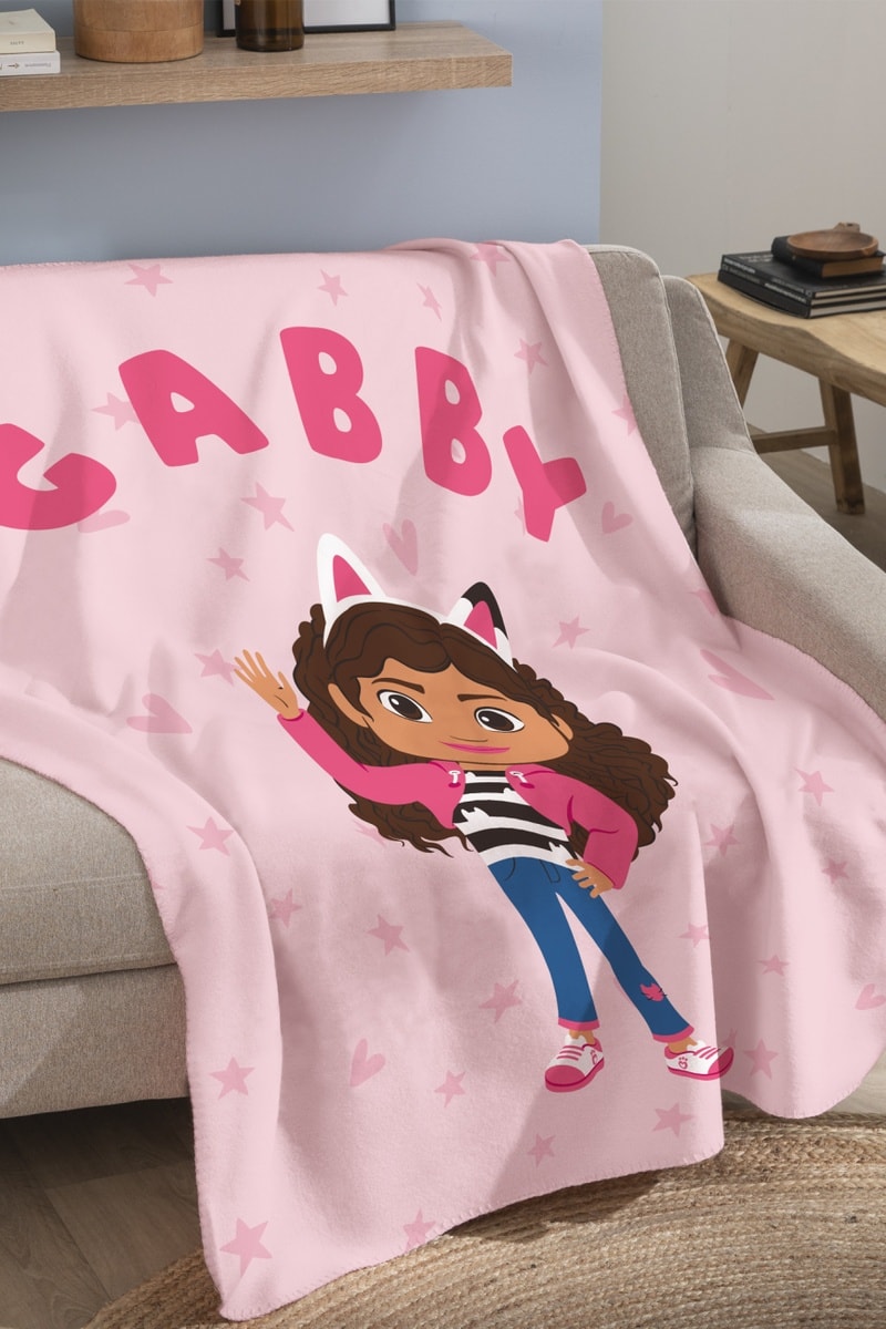 Plaid tout doux à l'effigie de Gabby et La Maison Magique, idéal pour apporter une touche de magie et de couleur à la chambre de votre enfant.