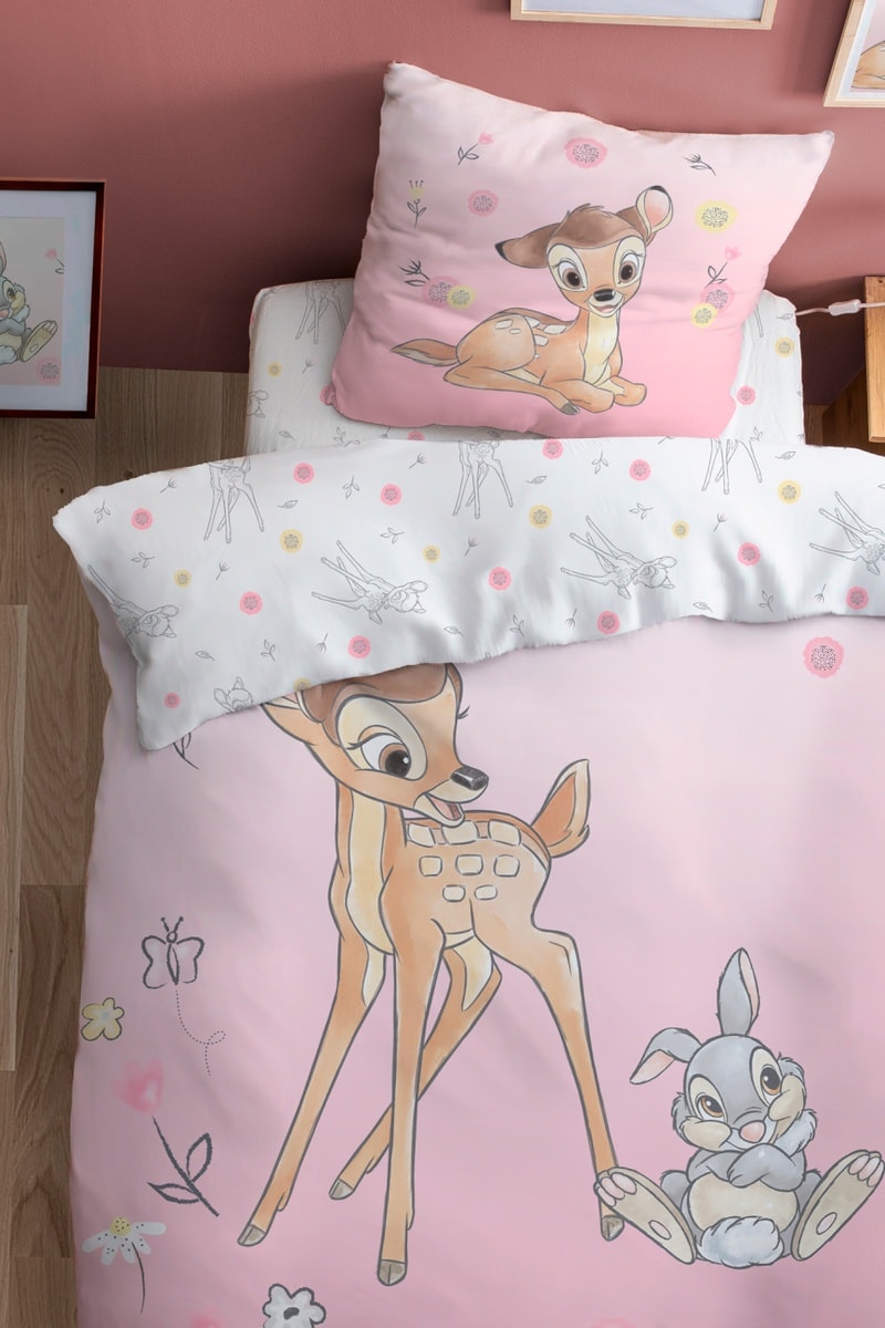 Motif Bambi et Panpan, avec un design réversible pour varier la décoration de la chambre.