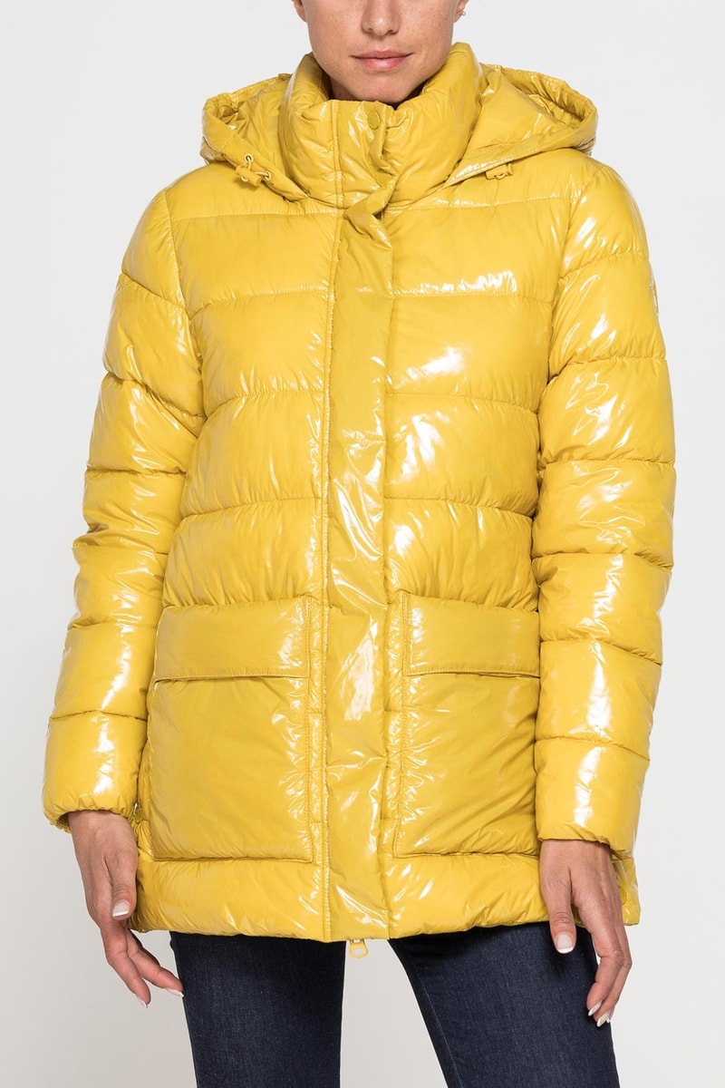 Doudoune regular à capuche avec liens de serrage à manches longues.