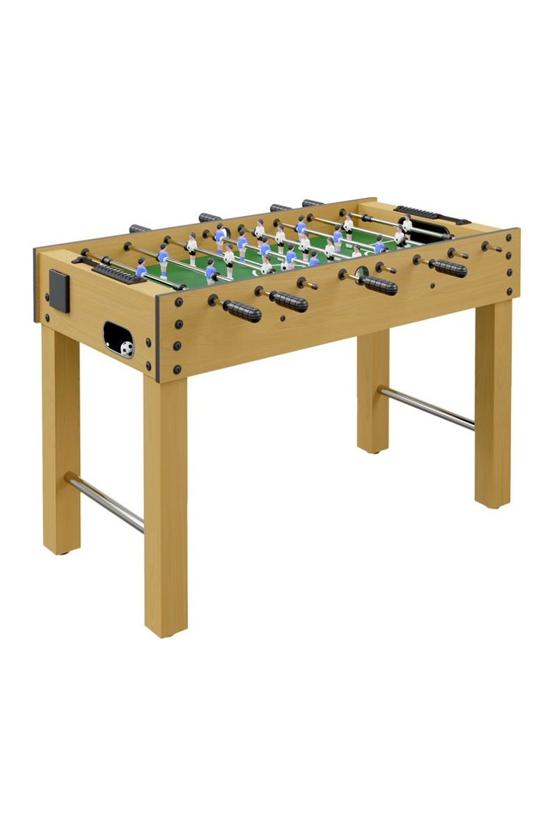 Le baby-foot teenagers est un modèle très apprécié des enfants grâce à sa forme étroite qui permet aux petits gabarits de jouer convenablement. Le bois contreplaqué marron clair apporte un design élégant, sa solidité et son aspect robuste sont deux points forts. Le comptage des points se fait grâce aux 10 dés en chromés présents de chaque côté de la table.