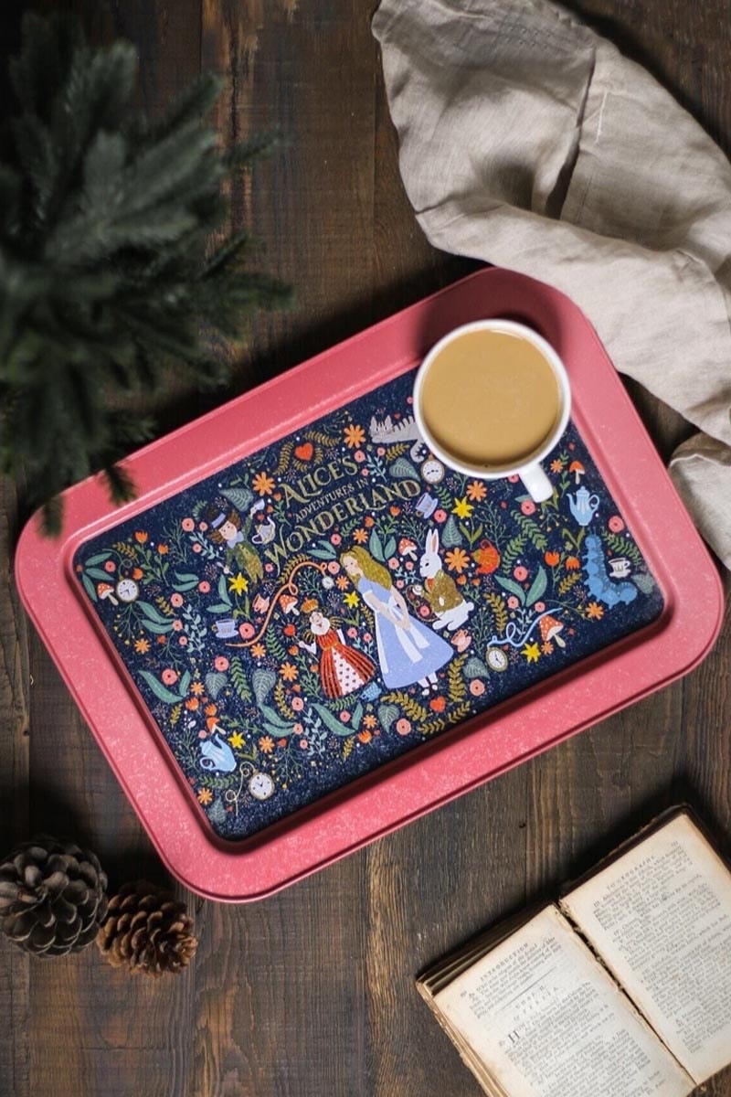 Motifs fleuris et personnages du conte Alice au pays des merveilles.