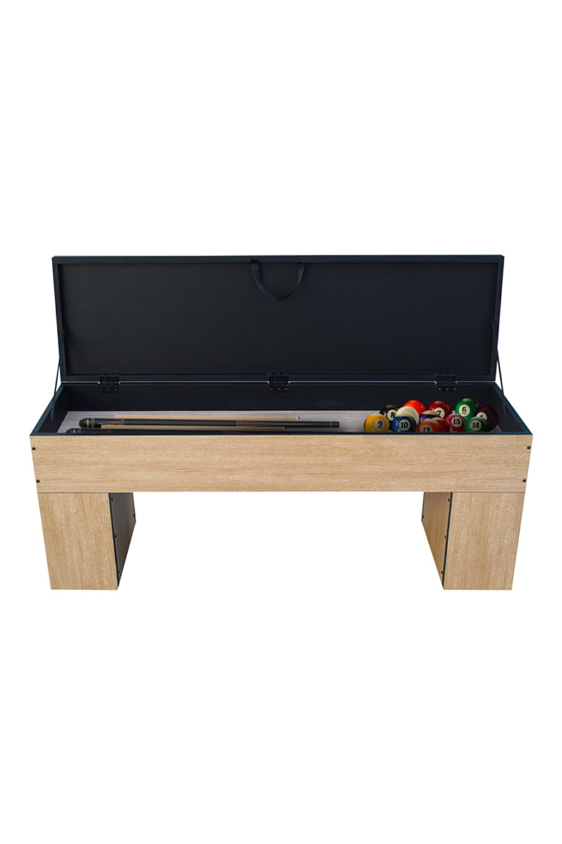 Sublimez votre espace de vie avec ce banc-coffre deluxe, conçu pour compléter parfaitement votre table de billard américain convertible. Ce banc 2 places, au design contemporain en panneau de fibres à densité moyenne (MDF) et chlorure de polyvinyle (PVC), est doté d’une assise confortable en coussin et d’un espace de rangement astucieux pour vos accessoires de billard.
