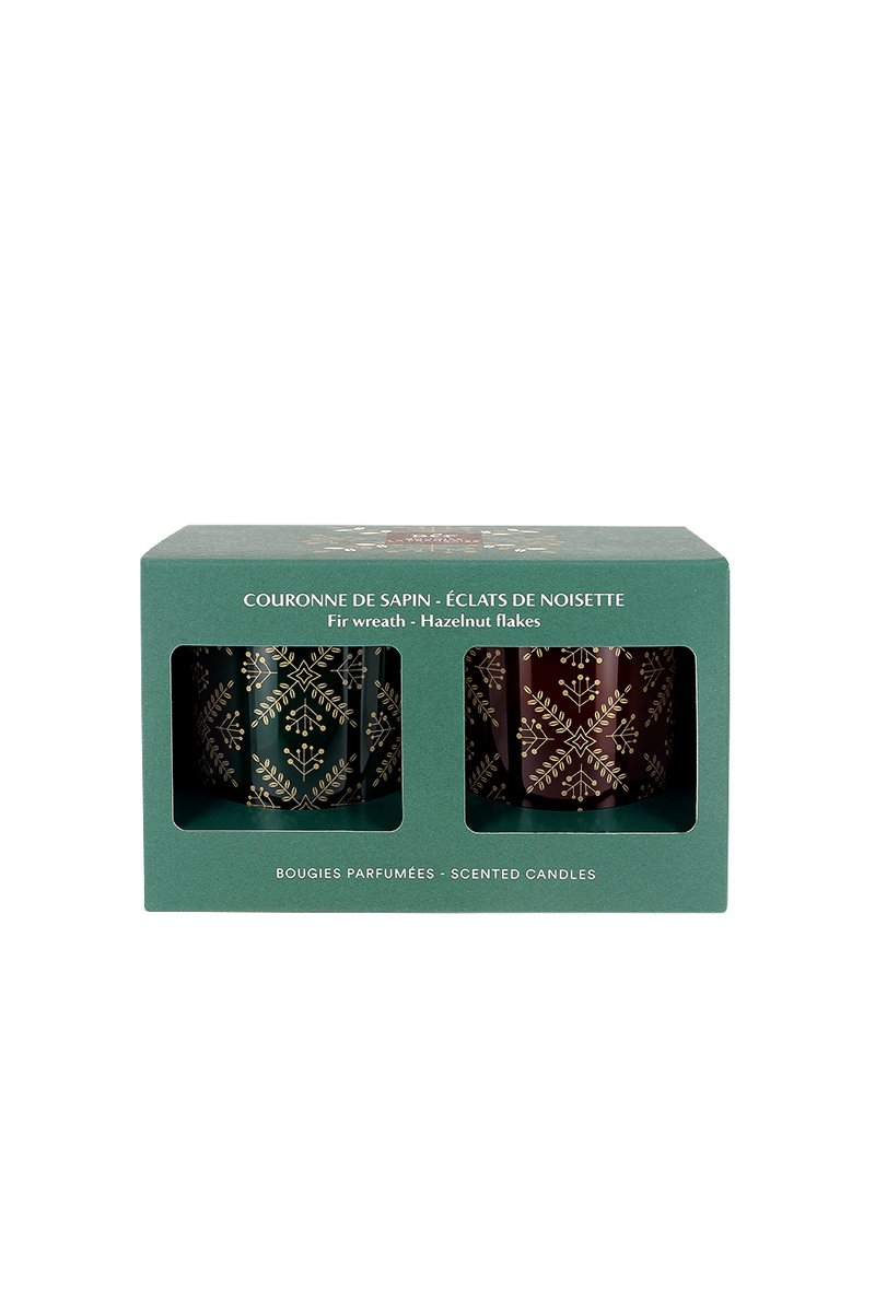 2 bougies parfumées - Couronne de sapin et éclats de noisette