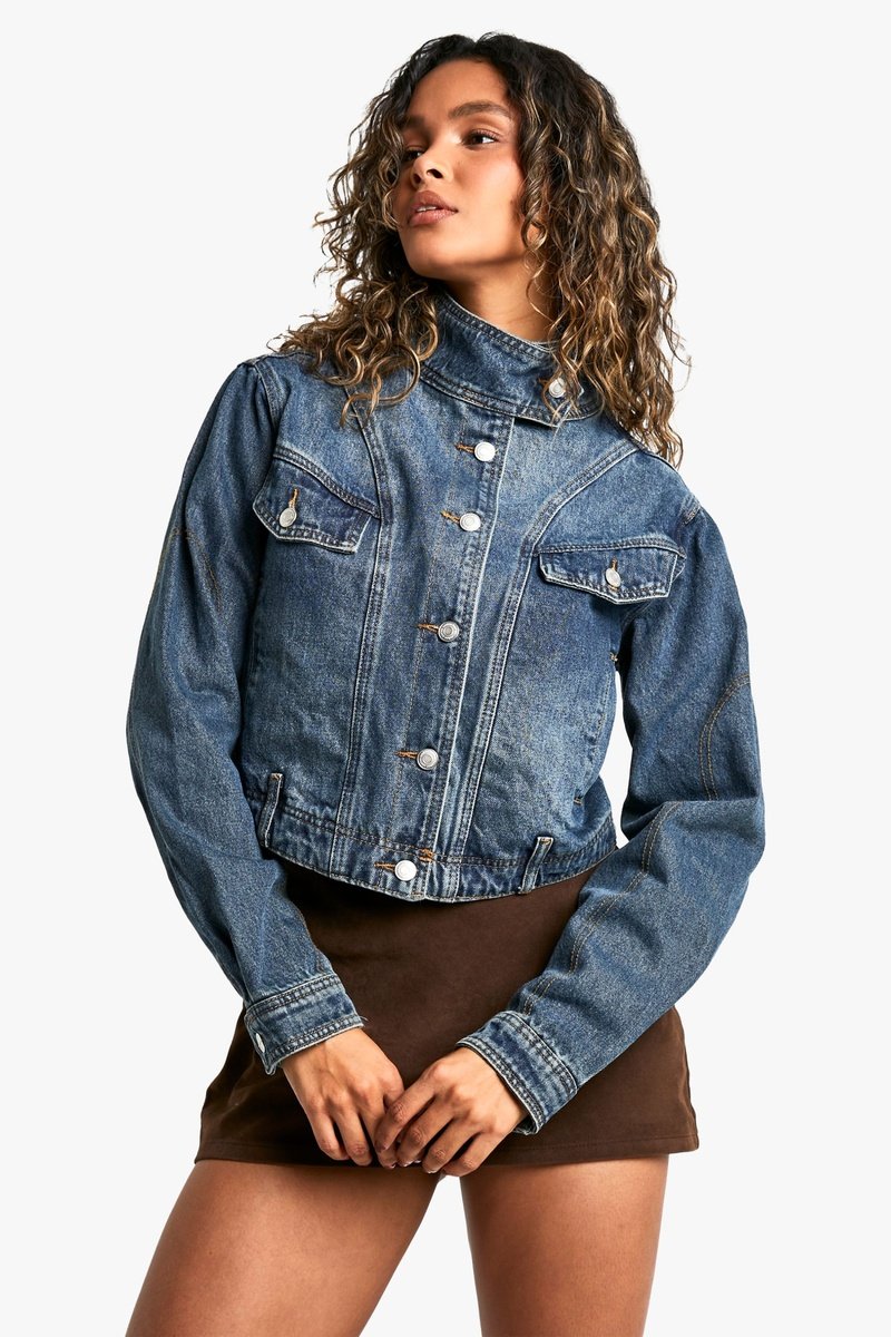 Veste en jean à manches longues boutonnées.