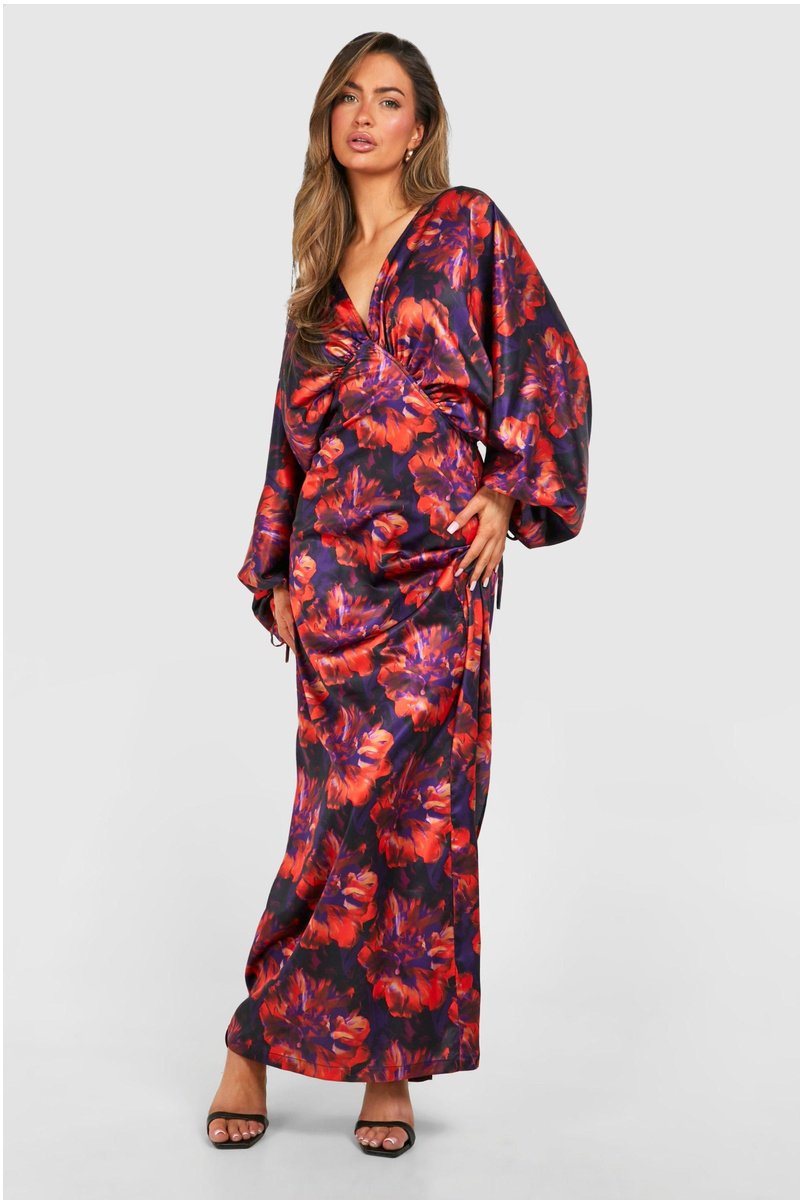 Robe longue à manches longues chauve-souris avec liens à nouer.
