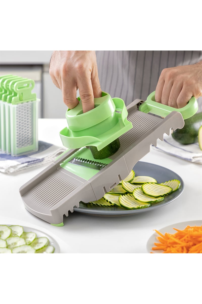 3 accessoires coupe-légumes inclus : julienne, lame plate et plissée.