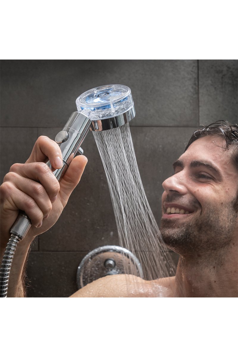 Eco-douche avec une hélice à pression et un filtre purificateur.