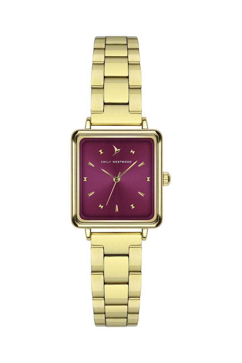 Montre à quartz en acier - Doré et bordeaux - Emily Westwood