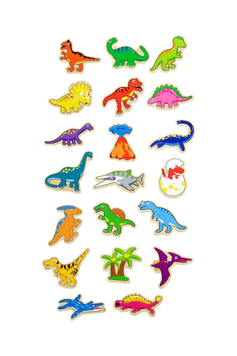 Dinosaures magnétiques en bois - 20 pièces - Dès 2 ans