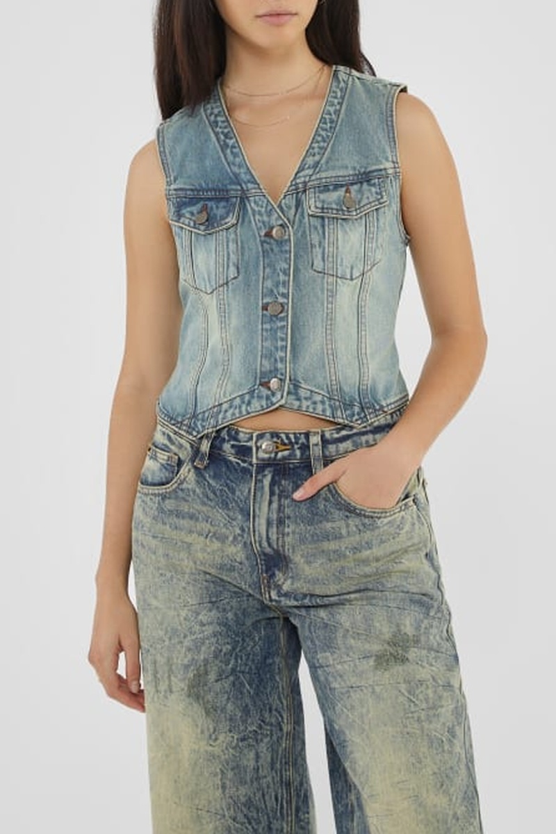 Gilet sans manches en jean Go Vintage - Bleu clair