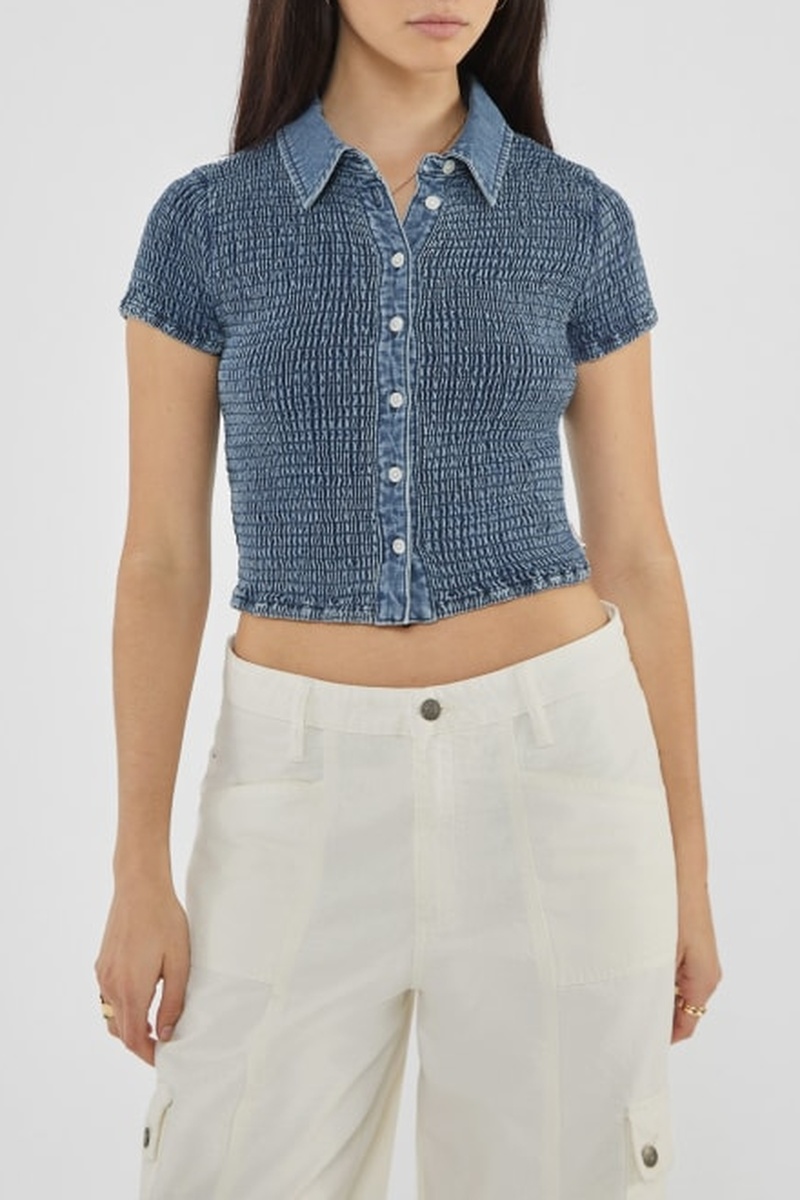 Chemisier court en jean smocké.