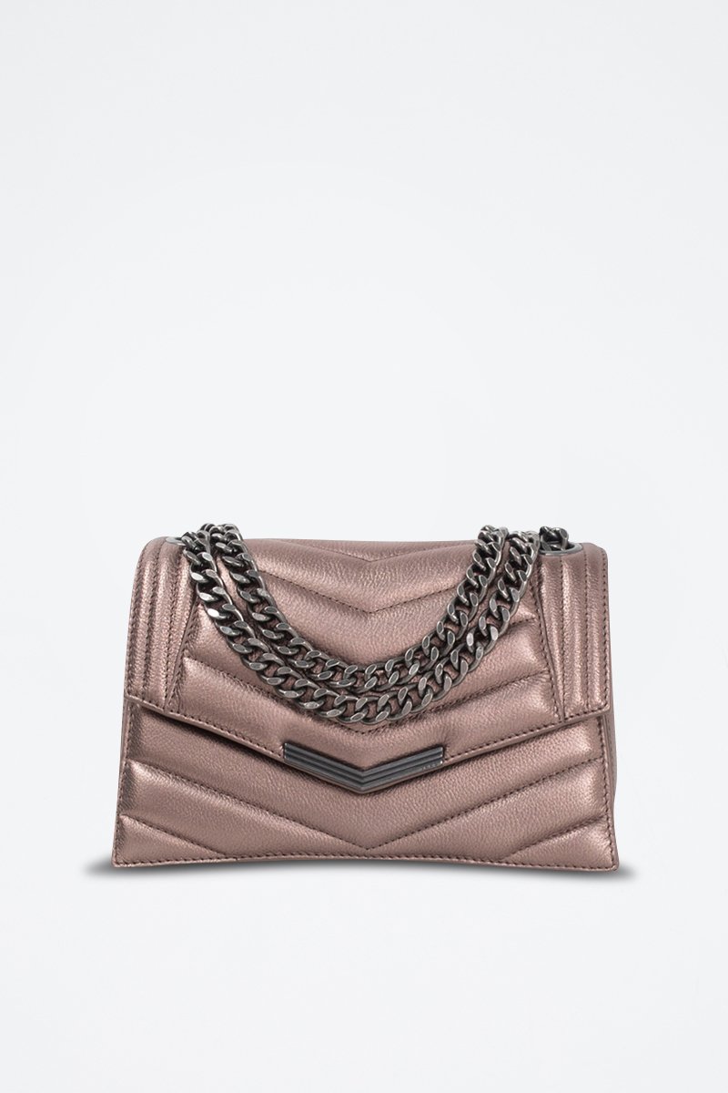 Sac porté épaule en cuir de veau - Bronze - IKKS