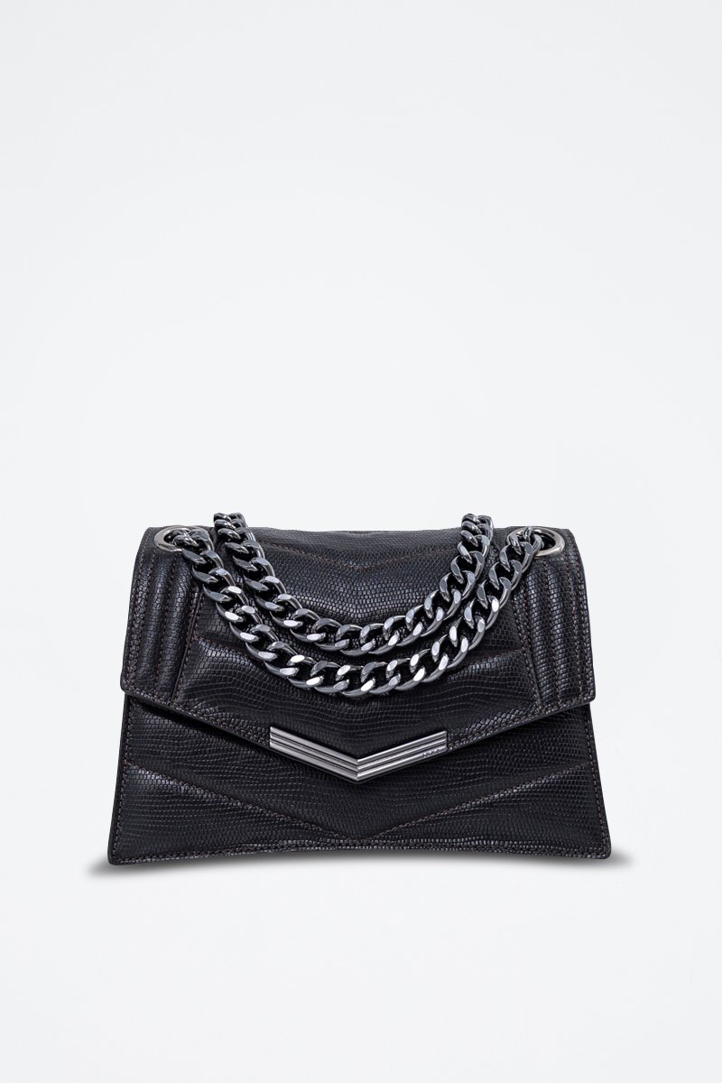 Sac porté épaule en cuir d'agneau - Noir - IKKS